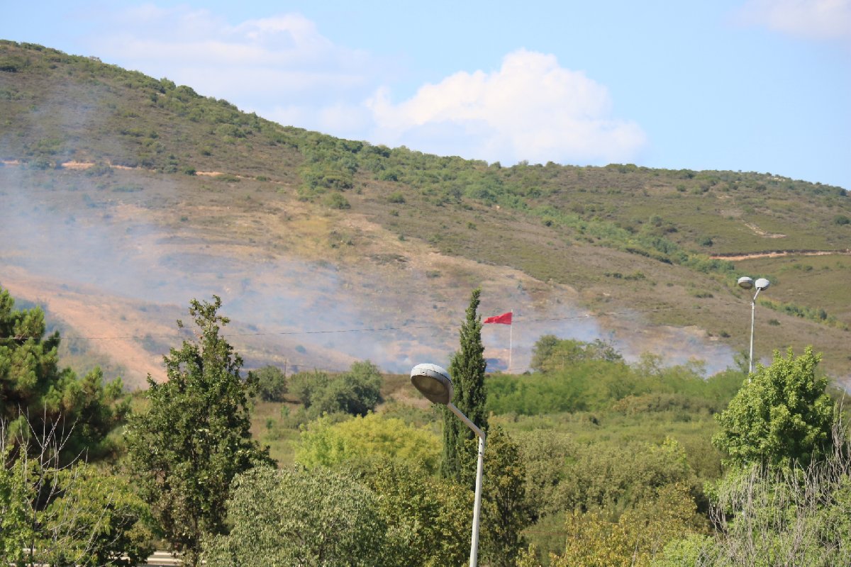 Atış poligonunun bulunduğu otluk alanda çıkan yangına itfaiye ekipler müdahale ediyor. İtfaiye ekipleri yangının bölgede bulunun mühimmat depolarına sıçramaması için büyük çaba harcıyor. Yangının askerlerin poligonda atış yaptığı sırada çıktığı öğrenildi.