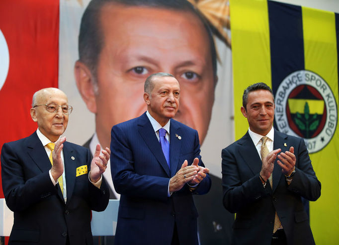 Fenerbahçe Kulübü'nde 25 yıllık kongre üyeliğini tamamlayan Cumhurbaşkanı Recep Tayyip Erdoğan, sarı-lacivertli kulübün Yüksek Divan Kurulu ekim ayı olağan toplantısına geldi. Fenerbahçe Başkanı Ali Koç ve Fenerbahçe Divan Kurulu Başkanı Vefa Küçük, Erdoğan'a rozet ve plaket takdim ederken Erdoğan da kürsüde açıklamalar yaptı.