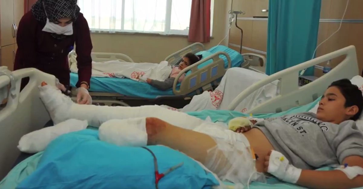 Tedavi altına alınan iki çocuğunun başında Suriyeli anne şunları ifade etti: “Allah, evlatlarıma sebep olan YPG'nin belasını versin. Allah, ailemi bu hale getirenin belasını versin. Tüm dünya ve herkes sesimizi duysun ki en çok sevdiğim oğlumun ayağının kesilmesine neden olan YPG'dir.
