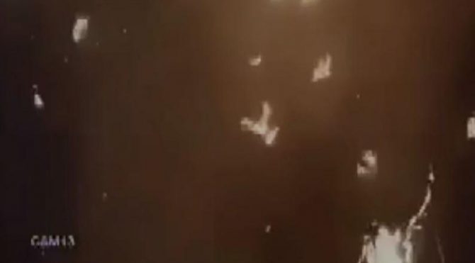 Parand kasabasında bir iş yerinin güvenlik kamerası, uçağın yere çakıldığı andaki patlamayı ve uçaktan parçaların alevli şekilde etrafa savrulduğu anları kaydetti.