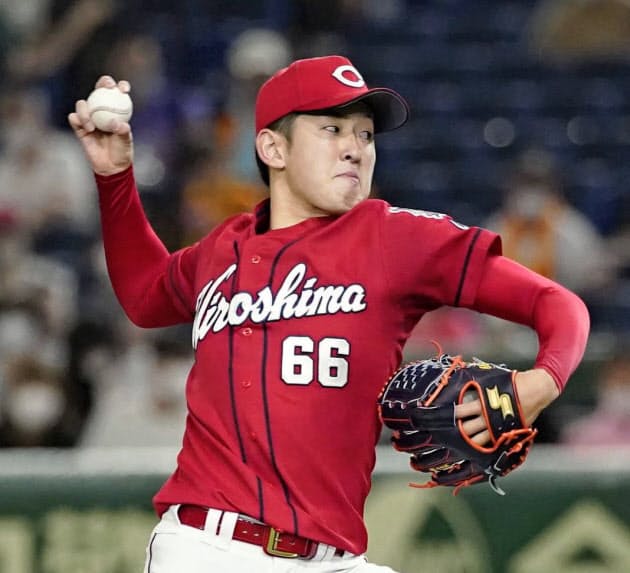 広島の先発右腕、遠藤は「自分で点数を取ってなんとか楽にしたい」と打席に入った三回2死二、三塁で中前に2点適時打。プロ初打点となる一打で序盤にリードを広げたことで、リラックスできた。のびのびと腕を振り、2失点でプロ初完投。「先発投手の理想像。味わったことのない感じ」と喜びに浸った。