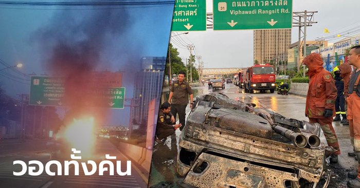 ร.ต.ท.ธนพล บางซื่อ รองสารวัตร(สอบสวน) สน.บางเขน รับแจ้งอุบัติเหตุรถยนต์ชนกันมีเพลิงลุกไหม้ บนถนนประเสริฐมนูกิจ หรือ ถ.เกษตร-นวมินทร์ ช่วงก่อนทางลงอุโมงค์เกษตร มุ่งหน้างามวงศ์วาน จึงเข้าตรวจสอบที่เกิดเหตุ ก่อน ประสานรถน้ำดับเพลิงสำนักป้องกันและบรรเทาสาธารณภัยเขตบางเขนและลาดพร้าว ช่วยฉีดสกัดเพลิง